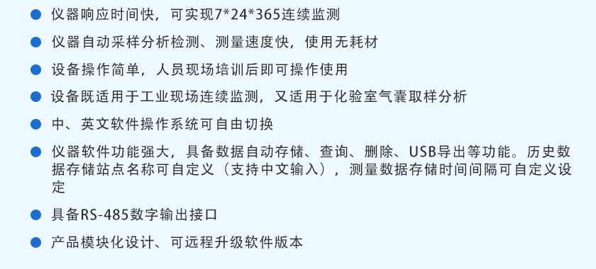 • 在線煤氣分析系統 TY-8300 TY-8300型煤氣在線分析系統是天禹智控自主研發新型在線監測系統,該產品基于非分光紅外(NDIR)氣體分析技術、長壽命電化學傳感技術以及基于MEMS的熱導技術,可同時在線測量煤氣的熱值,以及CO、CO2、CH4、H2、O2、CnHm等氣體的體積濃度。預處理系統采用冷干法設計,關鍵部件采用原裝進口,可根據現場不同的工況條件,為客戶定制解決方案,保證分析系統的可靠運行。