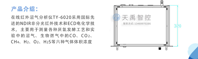 • 在線紅外沼氣分析儀 TY-6320 采用國際先進的NDIR非分光紅外技術和ECD電化學技術,主要用于測量各種厭氧發酵工藝和實驗中的沼氣、生物燃氣中的CO、CO2、CH4、H2、O2、H2S等六種氣體體積濃度。 適用于農村能源辦公室、畜牧養殖戶、農業種植戶、餐廚垃圾處理場、污水處理場、造紙廠、釀酒廠、制藥廠、檸檬酸廠、垃圾填埋場、工程公司、高校、研究所等檢測厭氧發酵工藝和實驗中的沼氣、生物燃氣中的氣體體積濃度和熱值。
