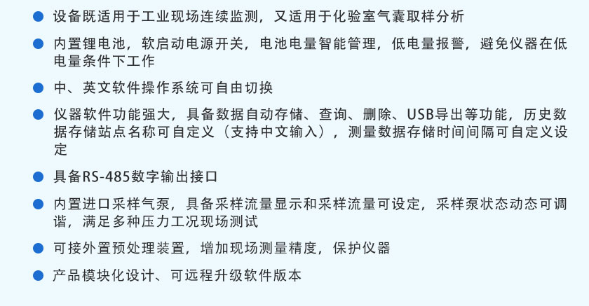 采用自主知識產權的NDIR非分光紅外技術,主要用于測量氣體中的CO、CO2、CH4、C3H8、SO2、NO等氣體的體積濃度及熱值。全進口傳感器、測量精度高、結構簡單、維護方便,軟件功能強大,可拓展性強、現場實用性好,目前暢銷國內外。