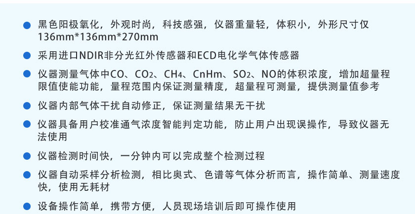 CO、CO2、CH4、CnHm:0~100%,SO2、NO:0~5% (量程可以根據用戶實際需求配置)