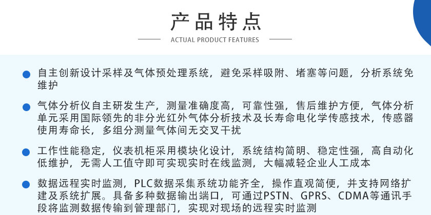 采用自主知識產(chǎn)權的NDIR非分光紅外技術,主要用于測量氣體中的CO、CO2、CH4、C3H8、SO2、NO等氣體的體積濃度及熱值。全進口傳感器、測量精度高、結構簡單、維護方便,軟件功能強大,可拓展性強、現(xiàn)場實用性好,目前暢銷國內(nèi)外。