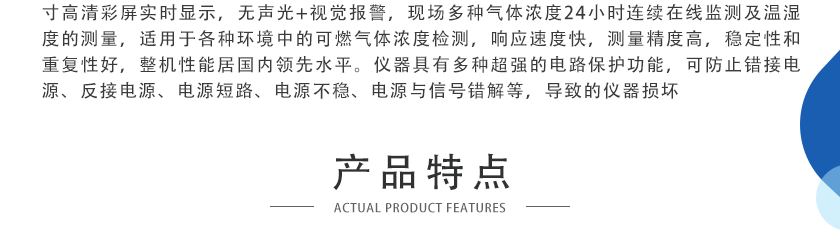 采用進(jìn)口催化燃燒傳感器和微控制器技術(shù),帶2.5寸高清彩屏實(shí)時(shí)顯示,帶聲光+視覺報(bào)警,現(xiàn)場(chǎng)多種氣體濃度 24 小時(shí)連續(xù)在線監(jiān)測(cè)及溫濕度的測(cè)量,適用于各種環(huán)境中的可燃?xì)怏w濃度檢測(cè),響應(yīng)速度快,測(cè)量精度高,穩(wěn)定性和重復(fù)性好,整機(jī)性能居國(guó)內(nèi)領(lǐng)先水平。儀器具有多種超強(qiáng)的電路保護(hù)功能,可防止錯(cuò)接電源、反接電源、電源短路、電源不穩(wěn)、電源與信號(hào)錯(cuò)解等,導(dǎo)致的儀器損壞。