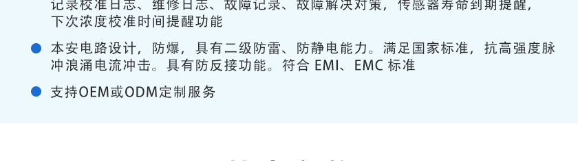 CO(0.1ppm)、H2S(0.01ppm)、O2(0.01%Vol)、Ex(0.1%LEL),更高分辨率可訂制 |