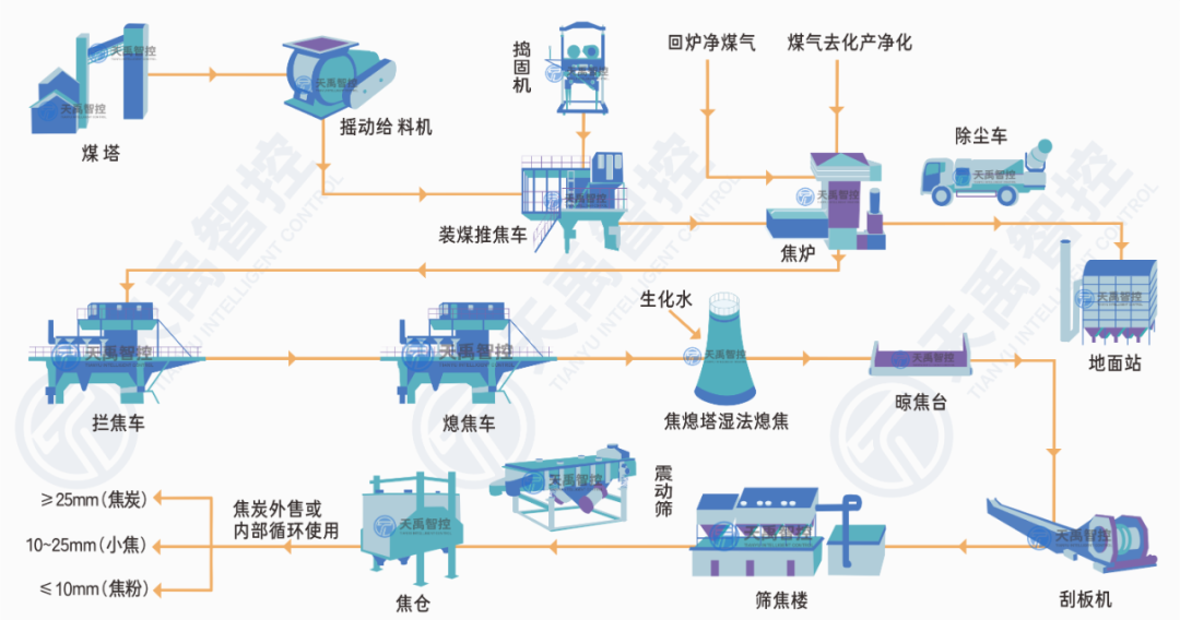 焦化廠一般由備煤、煉焦、回收、精苯、焦油、其他化學精制、化驗等車間組成。