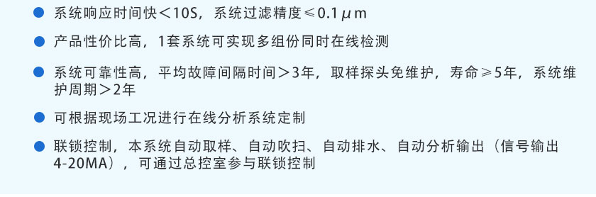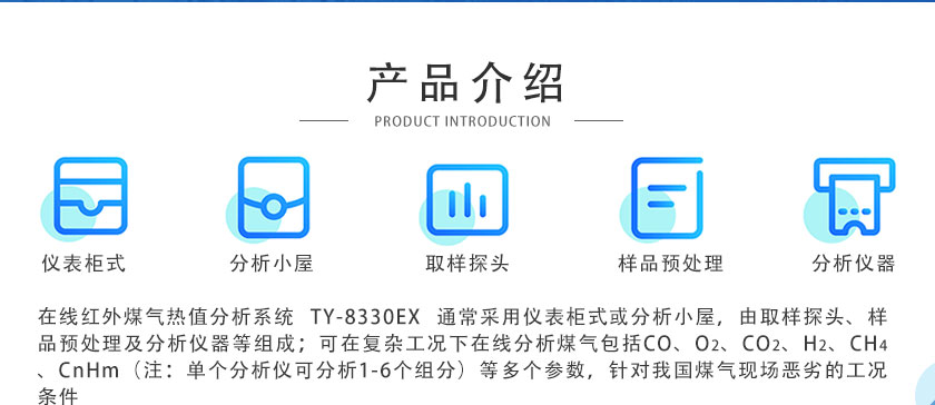 TY-8300型煤氣在線分析系統(tǒng)是天禹智控自主研發(fā)新型在線監(jiān)測(cè)系統(tǒng),該產(chǎn)品基于非分光紅外(NDIR)氣體分析技術(shù)、長(zhǎng)壽命電化學(xué)傳感技術(shù)以及基于MEMS的熱導(dǎo)技術(shù),可同時(shí)在線測(cè)量煤氣的熱值,以及CO、CO2、CH4、H2、O2、CnHm等氣體的體積濃度。預(yù)處理系統(tǒng)采用冷干法設(shè)計(jì),關(guān)鍵部件采用原裝進(jìn)口,可根據(jù)現(xiàn)場(chǎng)不同的工況條件,為客戶定制解決方案,保證分析系統(tǒng)的可靠運(yùn)行。
