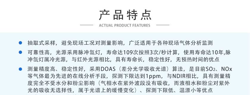 針對(duì)國內(nèi)外環(huán)保在線監(jiān)測(cè)分析自主研發(fā)的氣體分析產(chǎn)品,該分析儀基于紫外差分吸收光譜技術(shù)(DOAS)和電化學(xué)技術(shù),能夠測(cè)量SO2、NOx、CO、CO2、O2等氣體濃度。