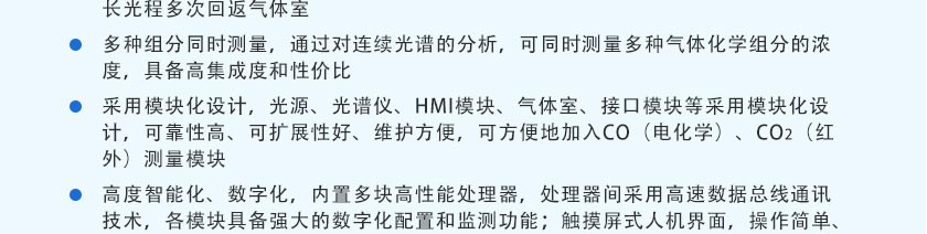 用國(guó)際先進(jìn)的TDLAS激光技術(shù),主要用于測(cè)量各種氣體中的HF、HCL、O2、CO、CO2、H2O、O2、NH3、CH4?等氣體體積濃度及熱值。