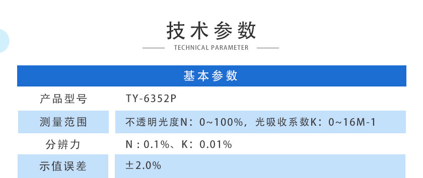 不透明光度N:0~100%,光吸收系數(shù);K:0~16M-1; |