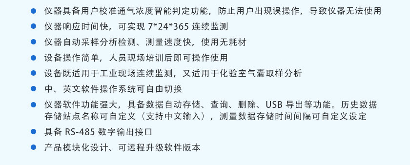(10)設備既適用于工業現場連續監測,又適用于化驗室氣囊取樣分析