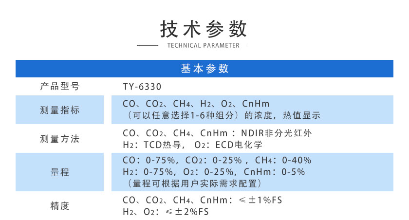 在線紅外煤氣熱值儀TY-6330采用國際先進的NDIR非分光紅外技術和基于MEMS的TCD熱導技術,主要用于測量各種煤氣、生物燃氣中的CO、CO2、CH4、H2、O2、CnHm?等六種氣體體積濃度及熱值。