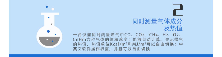 CO、CO2、CH4、H2、O2、H2S(可以任意選擇1-6種組分的濃度和熱值顯示)